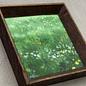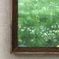 Dieses einzigartige Gouachegemälde wurde direkt auf das Format des Rahmens angepasst und ist fest darin eingesetzt. Es zeigt eine lebendige Wiesenfläche mit kleinen Wildblumen und dichter Vegetation in unterschiedlichen Grüntönen, die eine ruhige, naturverbundene Stimmung erzeugen. Die sichtbare Papierstruktur verstärkt den handgemalten Charakter und die feinen Farbübergänge. Die kräftigen Farbtöne harmonieren besonders gut mit dem warmen Farbton des gealterten Holzrahmens. Der Rahmen ist ein Second-Hand-Fundstück vom Flohmarkt, was dem Stück einen besonderen Charakter verleiht. Die Rückwand wurde erneuert, um die Stabilität zu gewährleisten. Zum Schutz der Farbleuchtkraft wird das Gemälde ohne Glas geliefert.